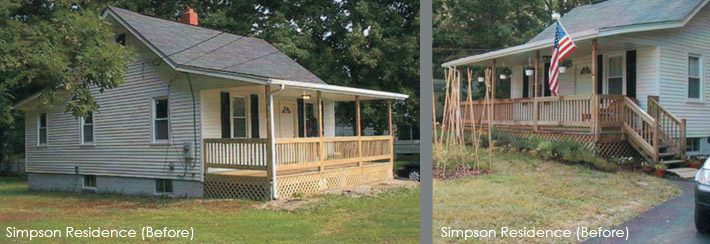 The Simpson house was a two story addition and renovation to an existing bungalow located in Davidsonville, Md. Added were three bedrooms and an attic/office space as well as front and rear wood porches.